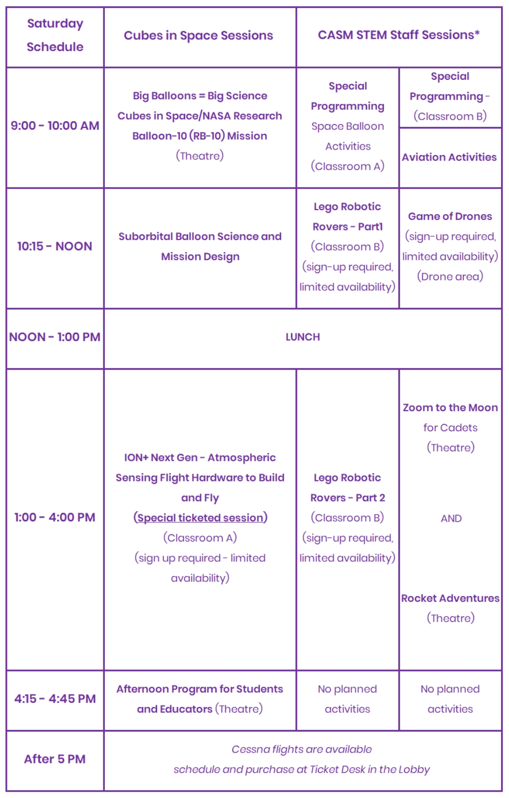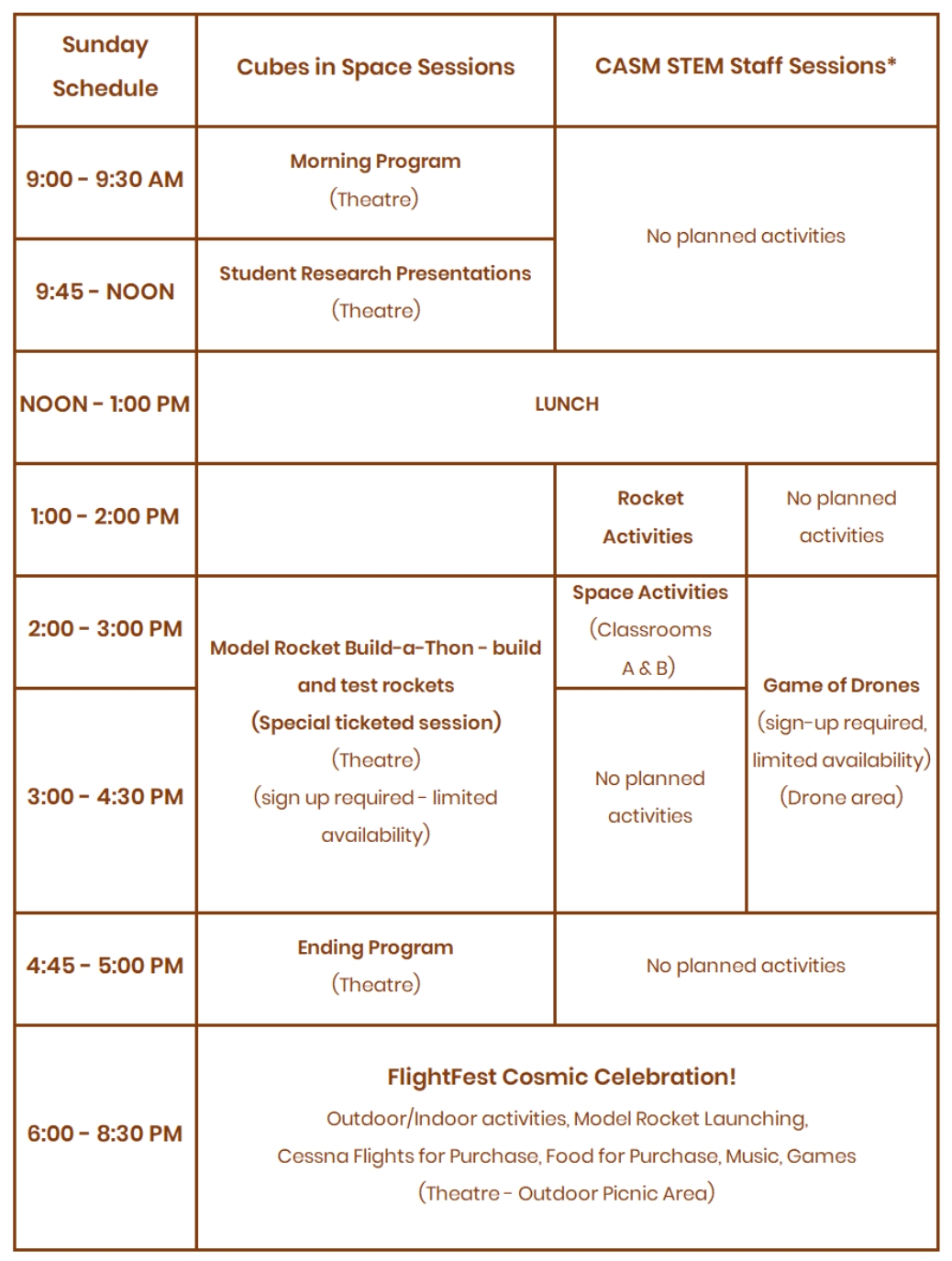 Eligibility: | Any FlightFest participant - students, educators or guests. Children younger than 14 MUST be accompanied by adult 18 years or older |