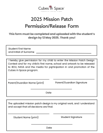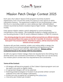 - All designs will become property of the Cubes in Space program and can be used in any print or digital media.